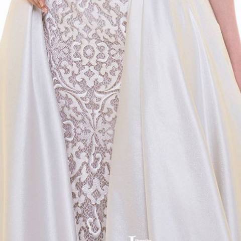كما تنوعت ألوان الفساتين من الأبيض الناصع الى الاوف وايت حتى يلبي جميع الرغبات والأذواق بأقمشة غاية في الفخامة والروعة مثل الساتان والدانتيل .